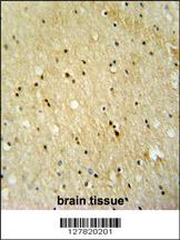 VWA3B antibody (C-term) (Cat. APR03435G) immunohistochemistry analysis in formalin fixed and paraffin embedded human brain tissue followed by peroxidase conjugation of the secondary antibody and DAB staining. This data demonstrates the use of the VWA3B antibody (C-term) for immunohistochemistry. Clinical relevance has not been evaluated.