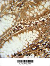C1orf51 antibody (N-term) (Cat. APR03438G) immunohistochemistry analysis in formalin fixed and paraffin embedded human large intestine followed by peroxidase conjugation of the secondary antibody and DAB staining. This data demonstrates the use of the C1orf51 antibody (N-term) for immunohistochemistry. Clinical relevance has not been evaluated.