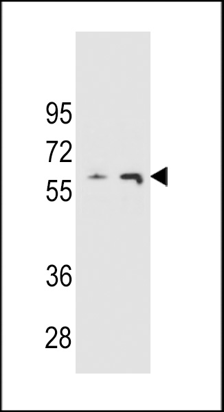 THUM3 Antibody (Center) (Cat. APR03483G) western blot analysis in A2058 and A375 cell line lysates (35ug/lane).This demonstrates the THUM3 Antibody (Center) antibody detected the THUM3 Antibody (Center) protein (arrow).