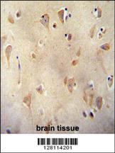 LRC40 antibody (C-term) (Cat. APR03522G) immunohistochemistry analysis in formalin fixed and paraffin embedded human brain tissue followed by peroxidase conjugation of the secondary antibody and DAB staining. This data demonstrates the use of the LRC40 antibody (C-term) for immunohistochemistry. Clinical relevance has not been evaluated.