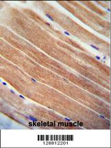 CST9 antibody (C-term) (Cat. APR03524G) immunohistochemistry analysis in formalin fixed and paraffin embedded human skeletal muscle followed by peroxidase conjugation of the secondary antibody and DAB staining. This data demonstrates the use of the CST9 antibody (C-term) for immunohistochemistry. Clinical relevance has not been evaluated.