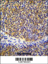 PSMB11 Antibody (C-term) (Cat. APR03554G)immunohistochemistry analysis in formalin fixed and paraffin embedded human thymoma followed by peroxidase conjugation of the secondary antibody and DAB staining.This data demonstrates the use of PSMB11 Antibody (C-term) for immunohistochemistry. Clinical relevance has not been evaluated. |