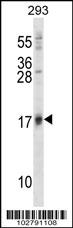 ISG15 Antibody (A46) (Cat. APR03570G) western blot analysis in 293 cell line lysates (35ug/lane).This demonstrates the ISG15 antibody detected the ISG15 protein (arrow). |