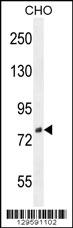 DEF Antibody (N-term) (Cat. APR03621G) western blot analysis in CHO cell line lysates (35ug/lane).This demonstrates the DEF antibody detected the DEF protein (arrow). |
