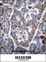 TP53INP1 Antibody (C-term) (Cat. APR03630G)immunohistochemistry analysis in formalin fixed and paraffin embedded human pancreas tissue followed by peroxidase conjugation of the secondary antibody and DAB staining.This data demonstrates the use of TP53INP1 Antibody (C-term) for immunohistochemistry. Clinical relevance has not been evaluated. |