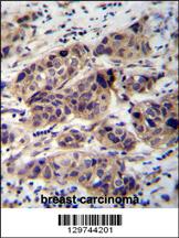 WDR42C Antibody (N-term) (Cat. APR03631G)immunohistochemistry analysis in formalin fixed and paraffin embedded human breast carcinoma followed by peroxidase conjugation of the secondary antibody and DAB staining.This data demonstrates the use of WDR42C Antibody (N-term) for immunohistochemistry. Clinical relevance has not been evaluated.