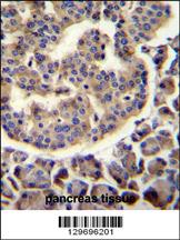 TRIM72 Antibody (C-term) (Cat. APR03643G)immunohistochemistry analysis in formalin fixed and paraffin embedded human pancreas tissue followed by peroxidase conjugation of the secondary antibody and DAB staining.This data demonstrates the use of TRIM72 Antibody (C-term) for immunohistochemistry. Clinical relevance has not been evaluated. |