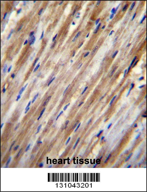 F2RL2 Antibody (N-term) (Cat. APR03671G)immunohistochemistry analysis in formalin fixed and paraffin embedded human heart tissue followed by peroxidase conjugation of the secondary antibody and DAB staining.This data demonstrates the use of F2RL2 Antibody (N-term) for immunohistochemistry. Clinical relevance has not been evaluated. |