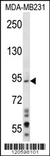 MAD1L1 Antibody (N-term) (Cat. APR03677G) western blot analysis in MDA-MB231 cell line lysates (35ug/lane).This demonstrates the MAD1L1 antibody detected the MAD1L1 protein (arrow). |