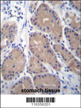 CA1 Antibody (N-term) (Cat. APR03722G)immunohistochemistry analysis in formalin fixed and paraffin embedded human stomach tissue followed by peroxidase conjugation of the secondary antibody and DAB staining.This data demonstrates the use of CA1 Antibody (N-term) for immunohistochemistry. Clinical relevance has not been evaluated.