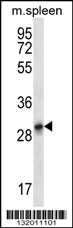 KRT222P Antibody (C-term) (Cat. APR03729G) western blot analysis in mouse spleen tissue lysates (35ug/lane).This demonstrates the KRT222P antibody detected the KRT222P protein (arrow). |