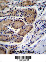 CTSO Antibody (N-term) (Cat. APR03735G)immunohistochemistry analysis in formalin fixed and paraffin embedded human stomach tissue followed by peroxidase conjugation of the secondary antibody and DAB staining.This data demonstrates the use of CTSO Antibody (N-term) for immunohistochemistry. Clinical relevance has not been evaluated. |