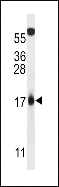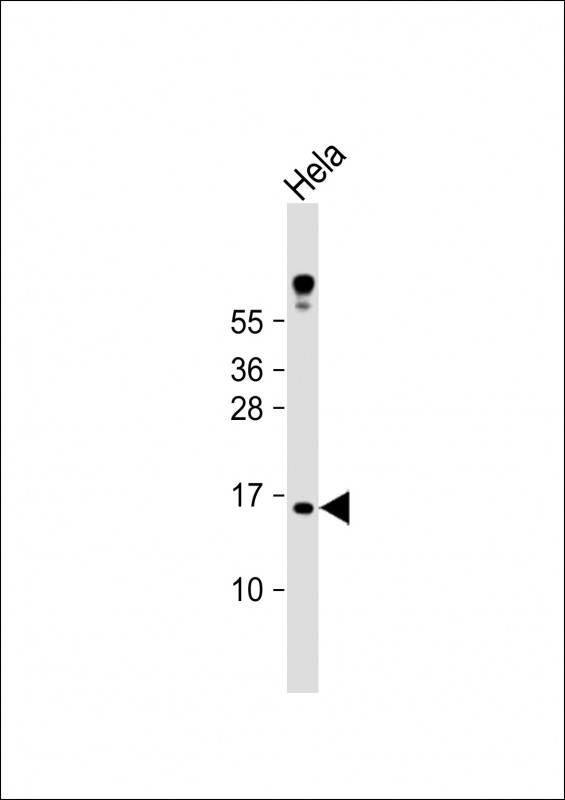 Anti-MLM Antibody (C-term) at 1:1000 dilution + Hela whole cell lysate Lysates/proteins at 20 μg per lane. Secondary Goat Anti-Rabbit IgG, (H+L), Peroxidase conjugated at 1/10000 dilution. Predicted band size : 14 kDa Blocking/Dilution buffer: 5% NFDM/TBST.