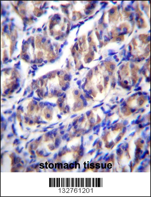 ODF2L Antibody (C-term) (Cat. APR03764G)immunohistochemistry analysis in formalin fixed and paraffin embedded human stomach tissue followed by peroxidase conjugation of the secondary antibody and DAB staining.This data demonstrates the use of ODF2L Antibody (C-term) for immunohistochemistry. Clinical relevance has not been evaluated. |
