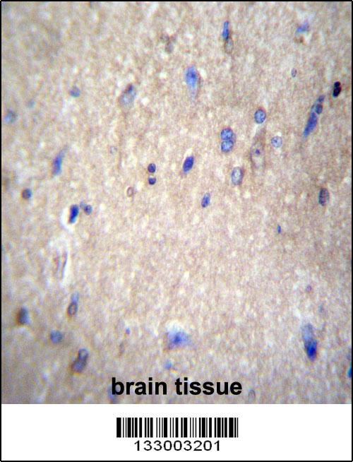 NAE1 Antibody (Center) (Cat. APR03771G)immunohistochemistry analysis in formalin fixed and paraffin embedded human brain tissue followed by peroxidase conjugation of the secondary antibody and DAB staining.This data demonstrates the use of NAE1 Antibody (Center) for immunohistochemistry. Clinical relevance has not been evaluated. |