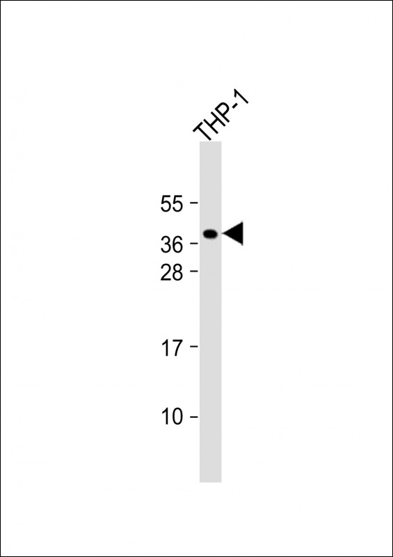 Anti-PQLC2 Antibody (C-term) at 1:1000 dilution + THP-1 whole cell lysate Lysates/proteins at 20 μg per lane. Secondary Goat Anti-Rabbit IgG, (H+L), Peroxidase conjugated at 1/10000 dilution. Predicted band size : 32 kDa Blocking/Dilution buffer: 5% NFDM/TBST.