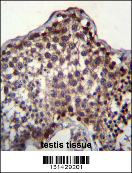 PQLC2 Antibody (C-term) (Cat. APR03775G)immunohistochemistry analysis in formalin fixed and paraffin embedded human testis tissue followed by peroxidase conjugation of the secondary antibody and DAB staining.This data demonstrates the use of PQLC2 Antibody (C-term) for immunohistochemistry. Clinical relevance has not been evaluated. |