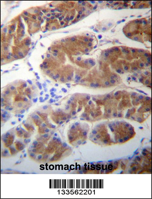 MORN1 Antibody (N-term) (Cat. APR03808G)immunohistochemistry analysis in formalin fixed and paraffin embedded human stomach tissue followed by peroxidase conjugation of the secondary antibody and DAB staining.This data demonstrates the use of MORN1 Antibody (N-term) for immunohistochemistry. Clinical relevance has not been evaluated. |