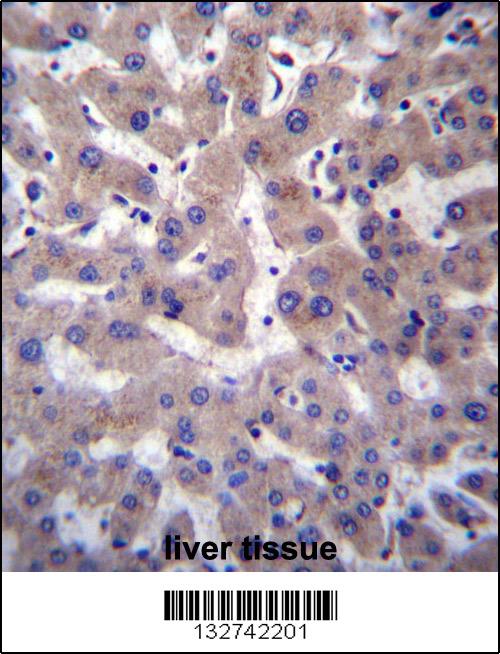 PRCP Antibody (N-term) (Cat. APR03813G)immunohistochemistry analysis in formalin fixed and paraffin embedded human liver tissue followed by peroxidase conjugation of the secondary antibody and DAB staining.This data demonstrates the use of PRCP Antibody (N-term) for immunohistochemistry. Clinical relevance has not been evaluated. |