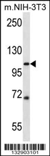 SIDT2 Antibody (Center) (Cat. APR03841G) western blot analysis in mouse NIH-3T3 cell line lysates (35ug/lane).This demonstrates the SIDT2 antibody detected the SIDT2 protein (arrow). |