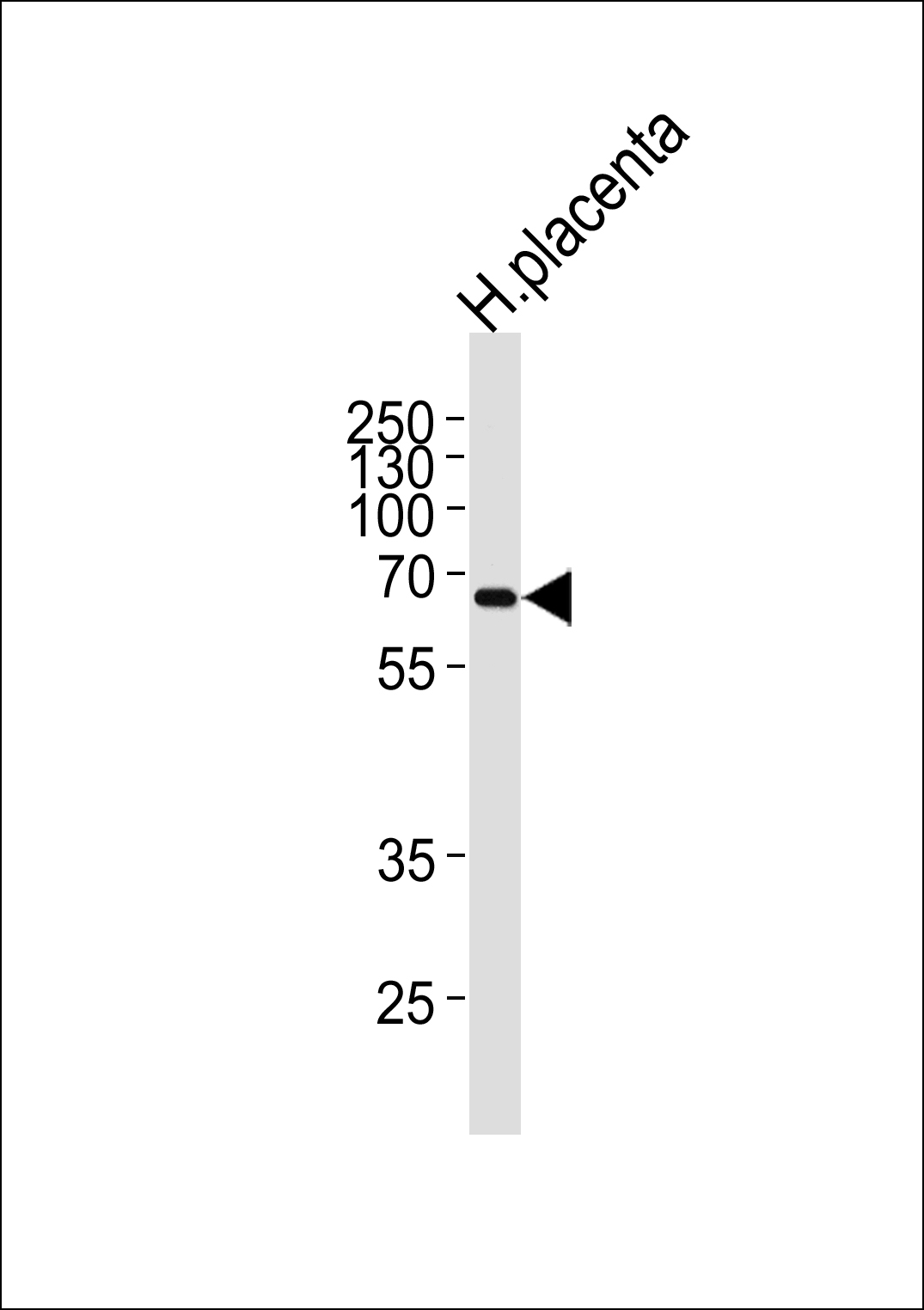 Western blot analysis of lysate from human placenta tissue lysate, using MMP19 Antibody (N-term)(Cat. APR03861G). APR03861G was diluted at 1:1000 at each lane. A goat anti-rabbit IgG H&L(HRP) at 1:5000 dilution was used as the secondary antibody. Lysate at 35ug per lane. |