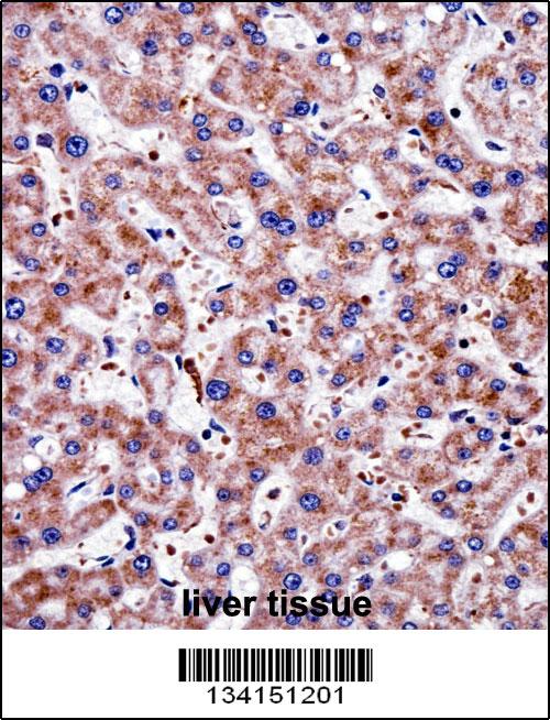 TAGLN2 Antibody (C-term) (APR03903G)immunohistochemistry analysis in formalin fixed and paraffin embedded human liver tissue followed by peroxidase conjugation of the secondary antibody and DAB staining.This data demonstrates the use of TAGLN2 Antibody (C-term) for immunohistochemistry. Clinical relevance has not been evaluated. |