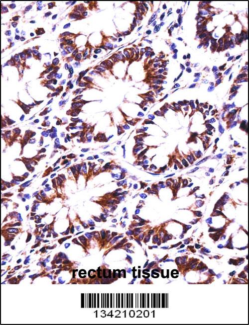 PDIA4 Antibody (N-term) (APR03928G)immunohistochemistry analysis in formalin fixed and paraffin embedded human rectum tissue followed by peroxidase conjugation of the secondary antibody and DAB staining.This data demonstrates the use of PDIA4 Antibody (N-term) for immunohistochemistry. Clinical relevance has not been evaluated. |