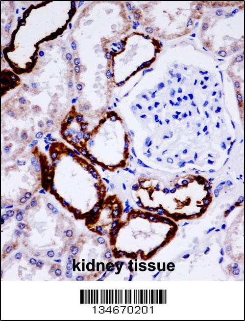 UMOD Antibody (Center) (APR03934G)immunohistochemistry analysis in formalin fixed and paraffin embedded human kidney tissue followed by peroxidase conjugation of the secondary antibody and DAB staining.This data demonstrates the use of UMOD Antibody (Center) for immunohistochemistry. Clinical relevance has not been evaluated. |