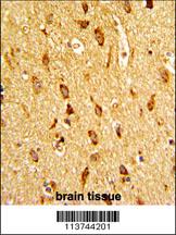 Formalin-fixed and paraffin-embedded human brain tissue with H Cadherin (CDH13) Antibody (N-term), which was peroxidase-conjugated to the secondary antibody, followed by DAB staining. This data demonstrates the use of this antibody for immunohistochemistry; clinical relevance has not been evaluated.