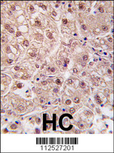 Formalin-fixed and paraffin-embedded human hepatocarcinoma tissue reacted with PSMA5 antibody (N-term)(Cat.APR03964G), which was peroxidase-conjugated to the secondary antibody, followed by DAB staining. This data demonstrates the use of this antibody for immunohistochemistry; clinical relevance has not been evaluated. |