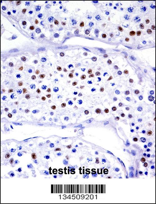 UBA1 Antibody (N-term) (APR03975G)immunohistochemistry analysis in formalin fixed and paraffin embedded human testis tissue followed by peroxidase conjugation of the secondary antibody and DAB staining.This data demonstrates the use of UBA1 Antibody (N-term) for immunohistochemistry. Clinical relevance has not been evaluated. |