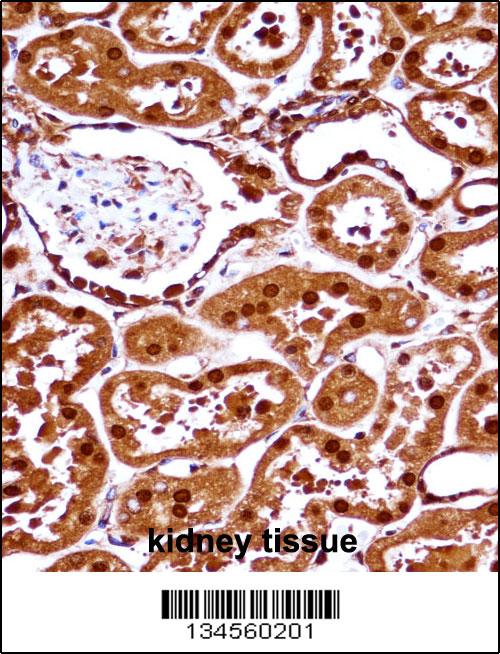 SET Antibody (N-term) (APR03978G)immunohistochemistry analysis in formalin fixed and paraffin embedded human kidney tissue followed by peroxidase conjugation of the secondary antibody and DAB staining.This data demonstrates the use of SET Antibody (N-term) for immunohistochemistry. Clinical relevance has not been evaluated. |