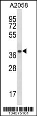 PSMA1 Antibody (C-term) (Cat. APR03980G) western blot analysis in A2058 cell line lysates (35ug/lane).This demonstrates the PSMA1 antibody detected the PSMA1 protein (arrow). |