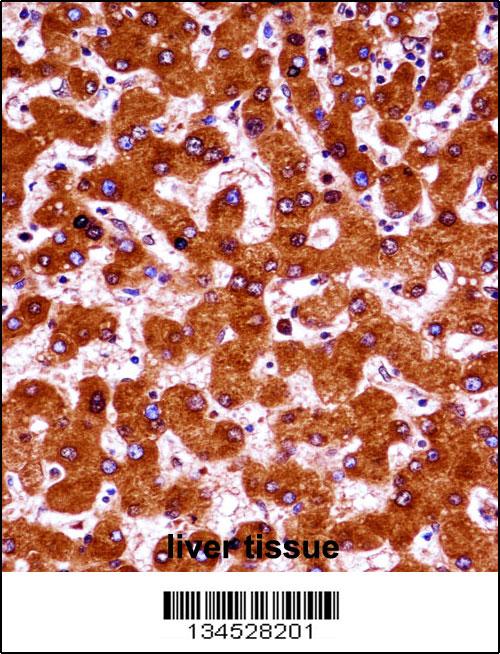 UBE4A Antibody (Center) (APR03994G)immunohistochemistry analysis in formalin fixed and paraffin embedded human liver tissue followed by peroxidase conjugation of the secondary antibody and DAB staining.This data demonstrates the use of UBE4A Antibody (Center) for immunohistochemistry. Clinical relevance has not been evaluated. |