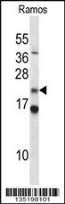 COPS8 Antibody (N-term) (Cat. APR04050G) western blot analysis in Ramos cell line lysates (35ug/lane).This demonstrates the COPS8 antibody detected the COPS8 protein (arrow). |