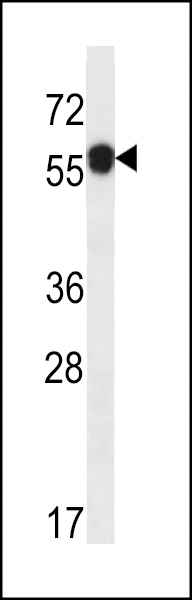 C6orf211 Antibody (N-term) (Cat. APR04090G) western blot analysis in ZR-75-1 cell line lysates (35ug/lane).This demonstrates the C6orf211 antibody detected the C6orf211 protein (arrow). |