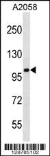 CCDC46 Antibody (N-term) (Cat. APR04097G) western blot analysis in A2058 cell line lysates (35ug/lane).This demonstrates the CCDC46 antibody detected the CCDC46 protein (arrow). |