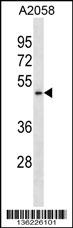 BFAR Antibody (N-term) (Cat. APR04130G) western blot analysis in A2058 cell line lysates (35ug/lane).This demonstrates the BFAR antibody detected the BFAR protein (arrow). |