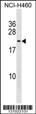 FUNDC1 Antibody (N-term) (Cat. APR04208G) western blot analysis in NCI-H460 cell line lysates (35ug/lane).This demonstrates the FUNDC1 antibody detected the FUNDC1 protein (arrow). |
