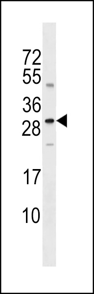 SOST Antibody (N-term) (Cat. APR04210G) western blot analysis in mouse liver tissue lysates (35ug/lane).This demonstrates the SOST antibody detected the SOST protein (arrow). |