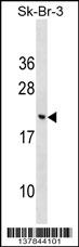 CNIH3 Antibody (N-term) (Cat. APR04222G) western blot analysis in SK-BR-3 cell line lysates (35ug/lane).This demonstrates the CNIH3 antibody detected the CNIH3 protein (arrow). |