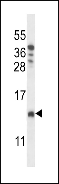 CHCH8 Antibody (C-term) (Cat. APR04247G) western blot analysis in T47D cell line lysates (35ug/lane).This demonstrates the CHCH8 antibody detected the CHCH8 protein (arrow). |