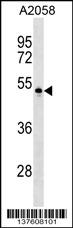 PVRL4 Antibody (Center) (Cat. APR04261G) western blot analysis in A2058 cell line lysates (35ug/lane).This demonstrates the PVRL4 antibody detected the PVRL4 protein (arrow). |