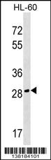 CGREF1 Antibody (C-term) (Cat. APR04265G) western blot analysis in HL-60 cell line lysates (35ug/lane).This demonstrates the CGREF1 antibody detected the CGREF1 protein (arrow). |