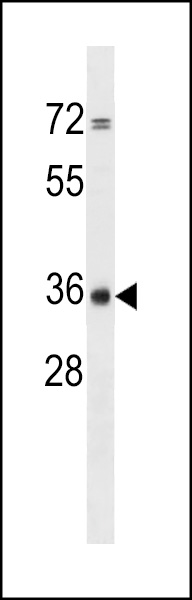 CPPED1 Antibody (C-term) (Cat. APR04266G) western blot analysis in ZR-75-1 cell line lysates (35ug/lane).This demonstrates the CPPED1 antibody detected the CPPED1 protein (arrow). |