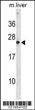 NOG Antibody (Center) (Cat. APR04286G) western blot analysis in mouse liver tissue lysates (35ug/lane).This demonstrates the NOG antibody detected the NOG protein (arrow). |