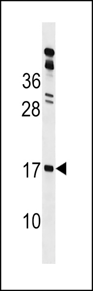 GAPR1 Antibody (N-term) (Cat. APR04289G) western blot analysis in Y79 cell line lysates (35ug/lane).This demonstrates the GAPR1 antibody detected the GAPR1 protein (arrow). |