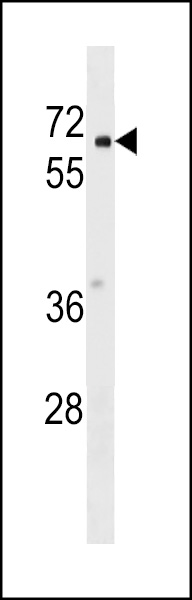 PYRD2 Antibody (N-term) (Cat. APR04291G) western blot analysis in A2058 cell line lysates (35ug/lane).This demonstrates the PYRD2 antibody detected the PYRD2 protein (arrow). |