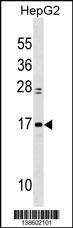 MYL6 Antibody (Center) (Cat. APR04314G) western blot analysis in HepG2 cell line lysates (35ug/lane).This demonstrates the MYL6 Antibody detected the MYL6 protein (arrow). |
