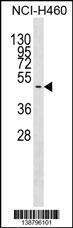 GNAS Antibody (C-term) (Cat. APR04328G) western blot analysis in NCI-H460 cell line lysates (35ug/lane).This demonstrates the GNAS antibody detected the GNAS protein (arrow). |